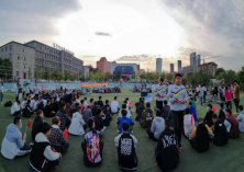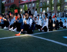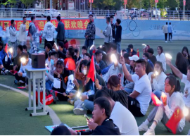 晚会现场热情澎湃,师生共同挥舞手中的国旗,夜幕下摇动手机手电筒的光亮像天上的星星,闪烁着耀眼的光芒,诉说着我们青年学子对祖国的热爱,对梦想的追逐。